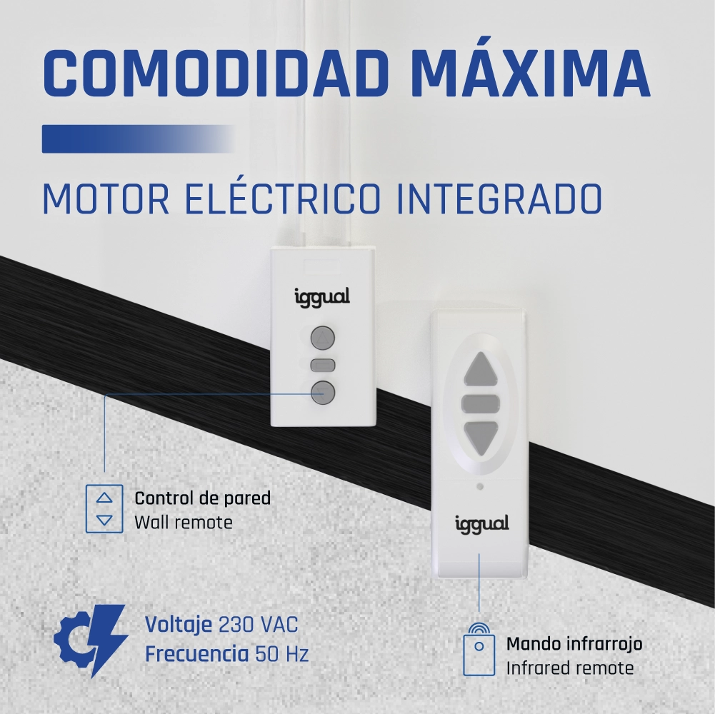 - Incluye control de pared y mando remoto infrarrojo (IR)