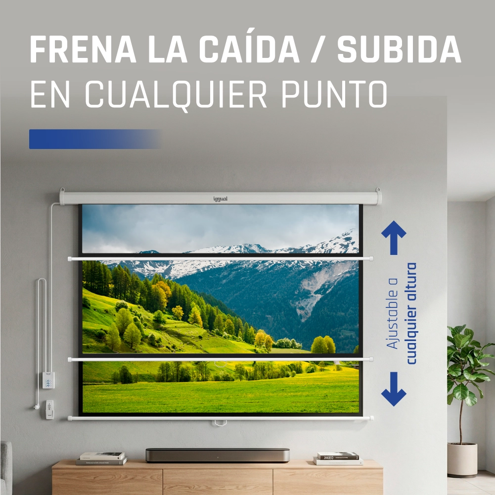 - La caída de la pantalla puede ser frenada en cualquier punto, por lo que se puede ajustar la longitud de la pantalla a cualquier formato.