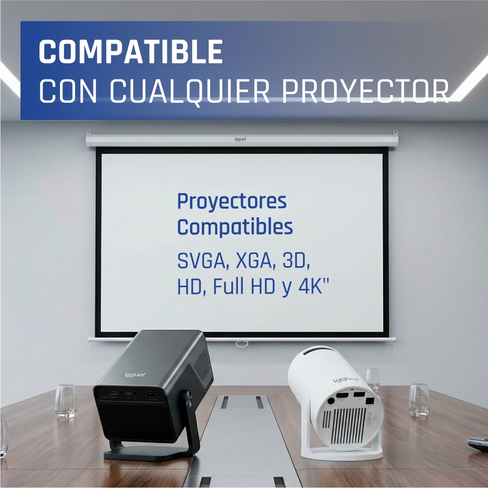 - Ideal para cualquier tipo de proyector, SVGA, XGA, 3D, HD, Full HD y 4K